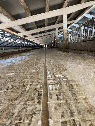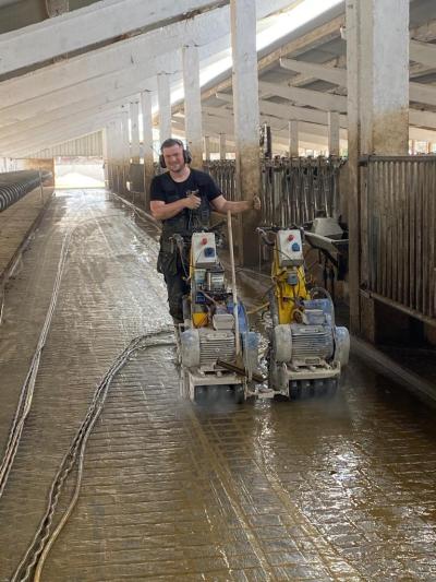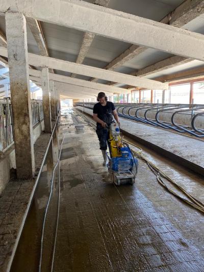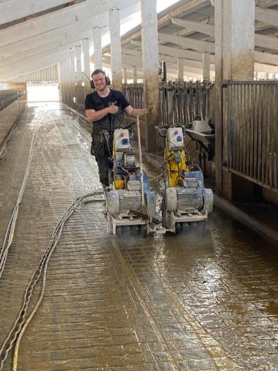 Zagen van geleidesleuf in vloer en tevens opruwen, Arad Roemeniƫ.